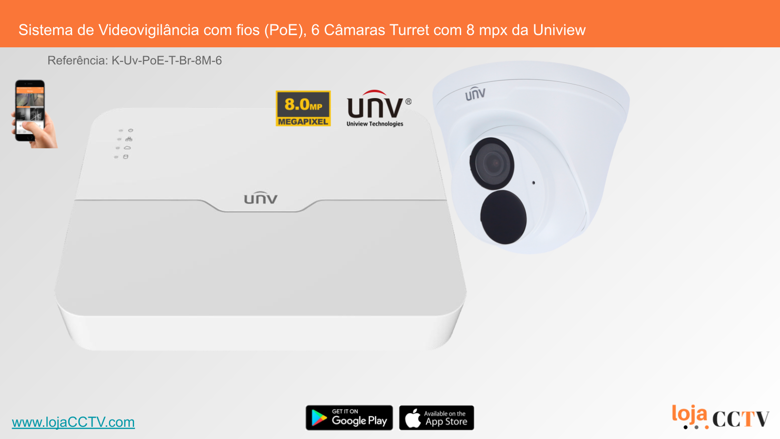 Sistema de Videovigilância com fios (PoE), 6 Câmaras Turret com 8 mpx da Uniview