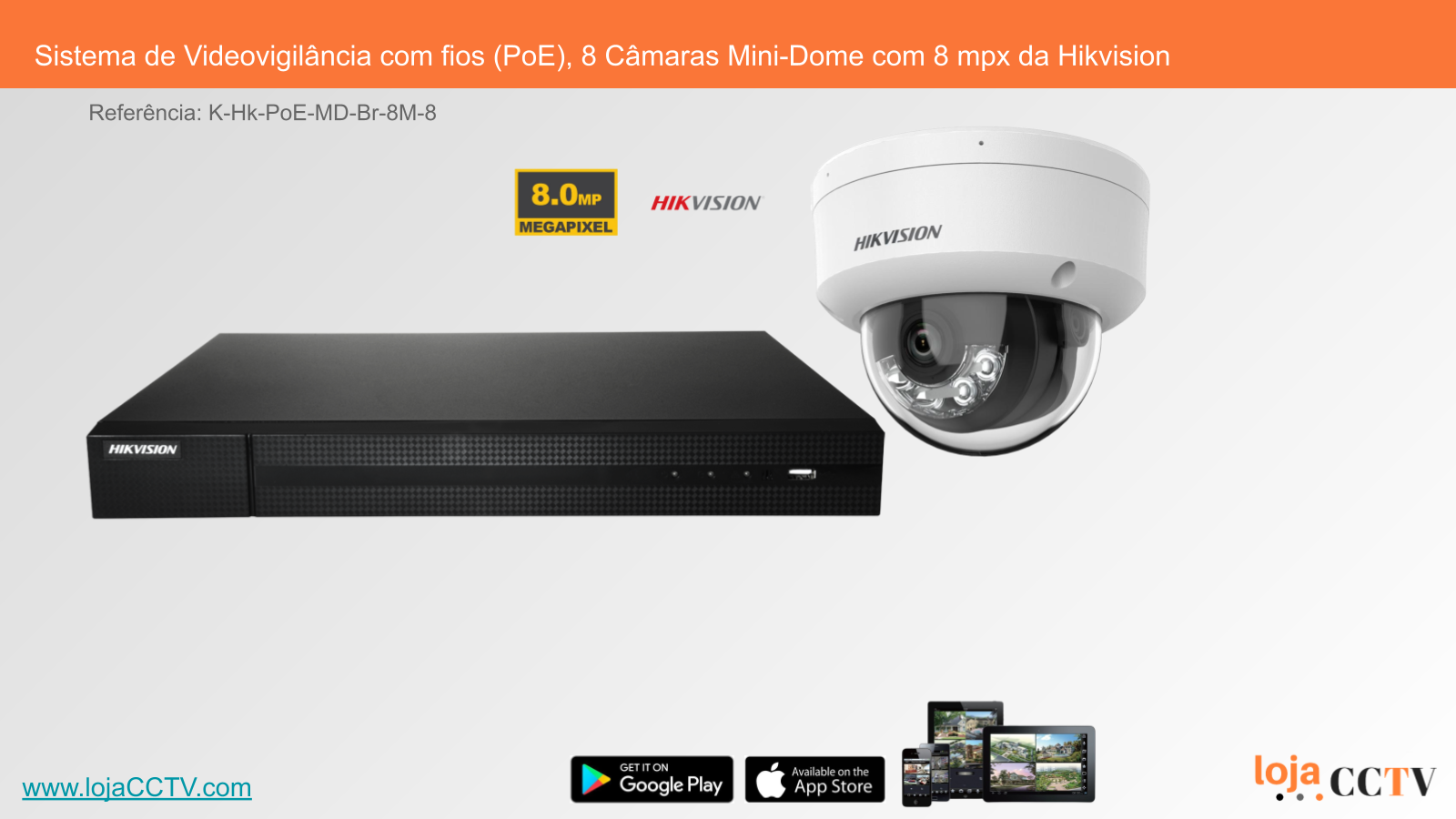 Sistema de Videovigilância com fios (PoE), 8 Câmaras Mini-Dome com 8 mpx da Hikvision