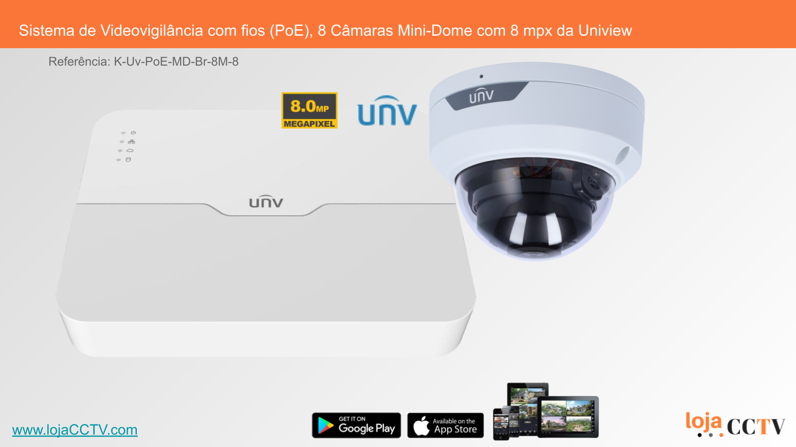 Sistema de Videovigilância com fios (PoE), 8 Câmaras Mini-Dome com 8 mpx da Uniview