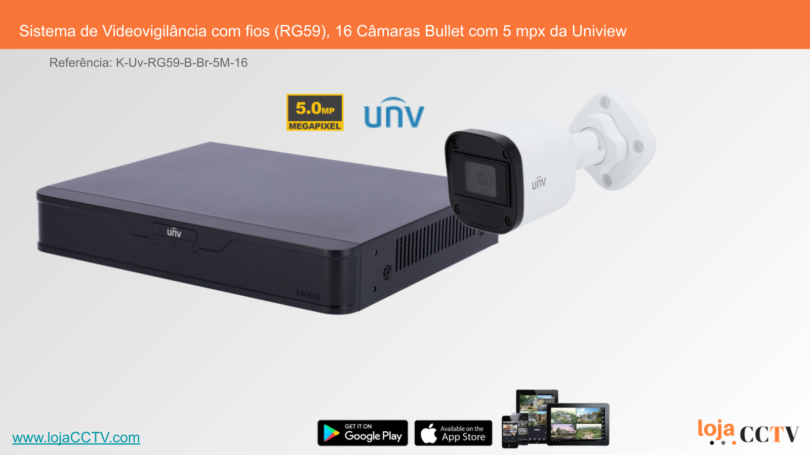 Sistema de Videovigilância com fios (RG59), 16 Câmaras Bullet com 5 mpx da Uniview