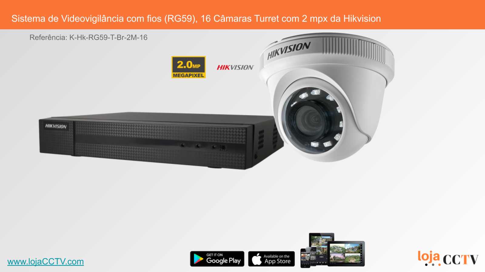 Sistema de Videovigilância com fios (RG59), 16 Câmaras Turret com 2 mpx da Hikvision