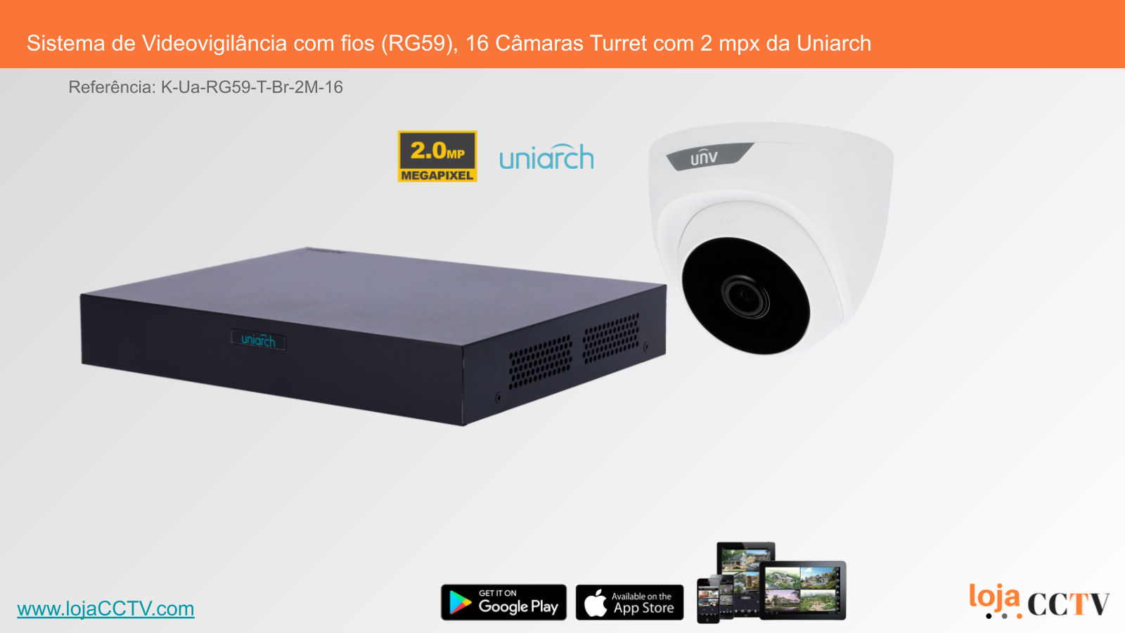 Sistema de Videovigilância com fios (RG59), 16 Câmaras Turret com 2 mpx da Uniarch