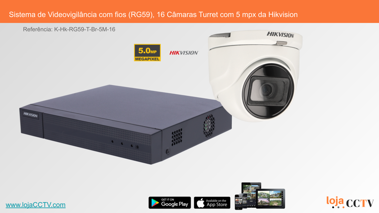 Sistema de Videovigilância com fios (RG59), 16 Câmaras Turret com 5 mpx da Hikvision