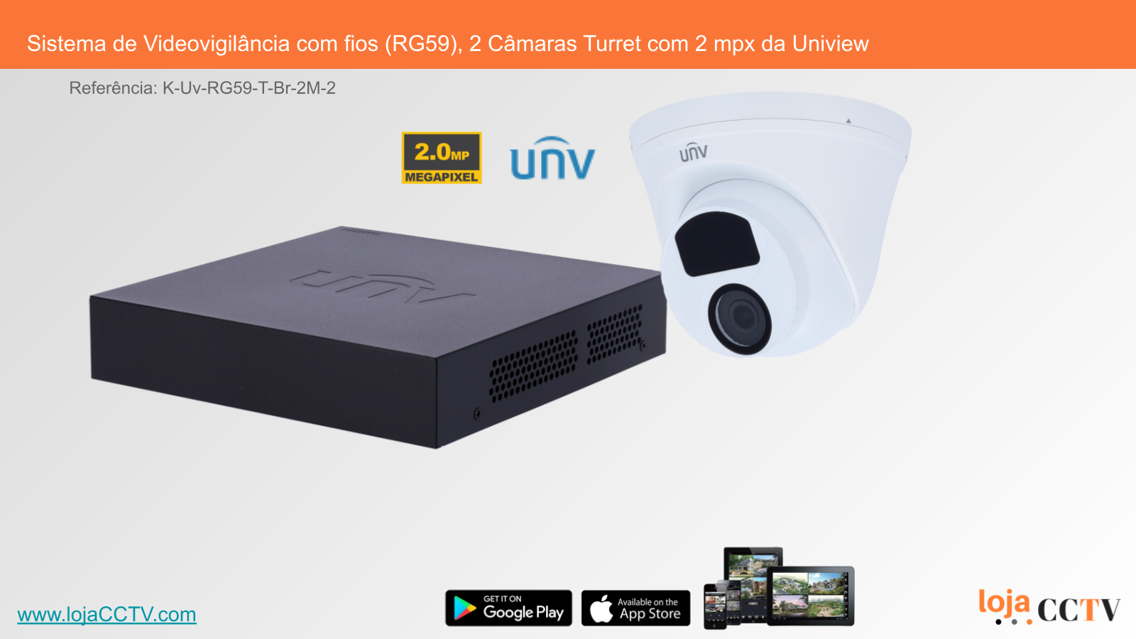 Sistema de Videovigilância com fios (RG59), 2 Câmaras Turret com 2 mpx da Uniview