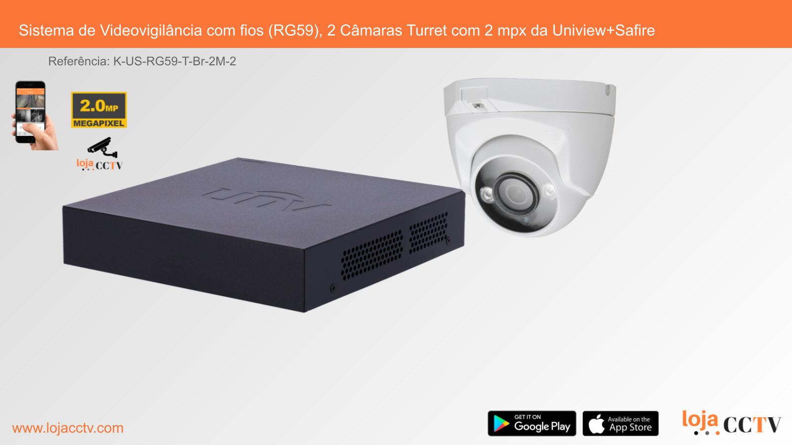 Sistema de Videovigilância com fios (RG59), 2 Câmaras Turret com 2 mpx da Uniview+Safire