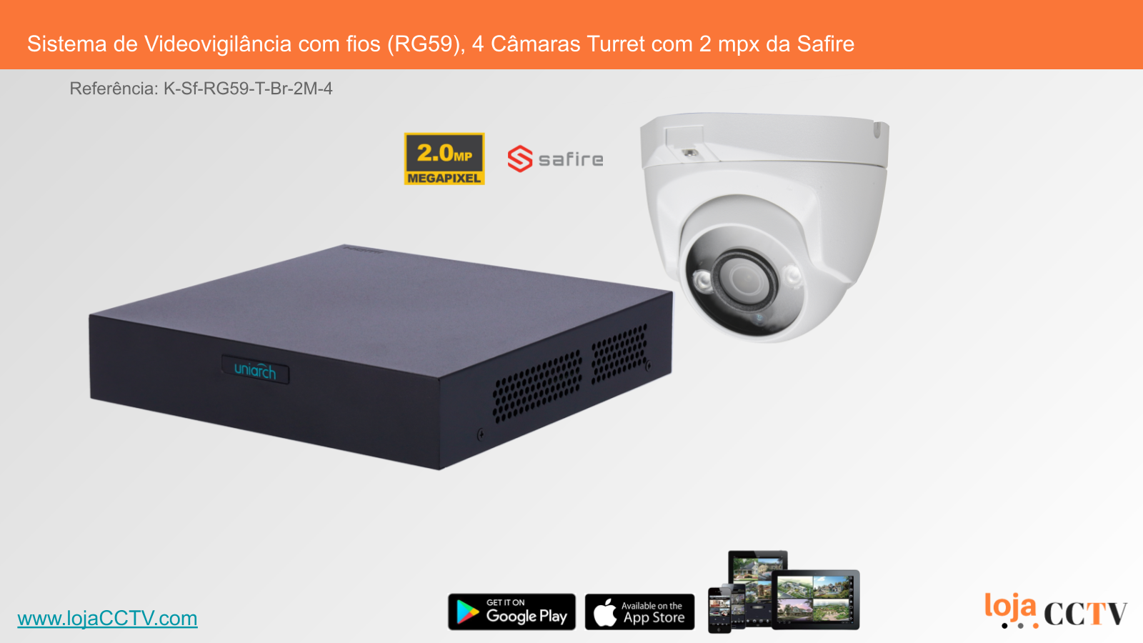 Sistema de Videovigilância com fios (RG59), 4 Câmaras Turret com 2 mpx da Safire