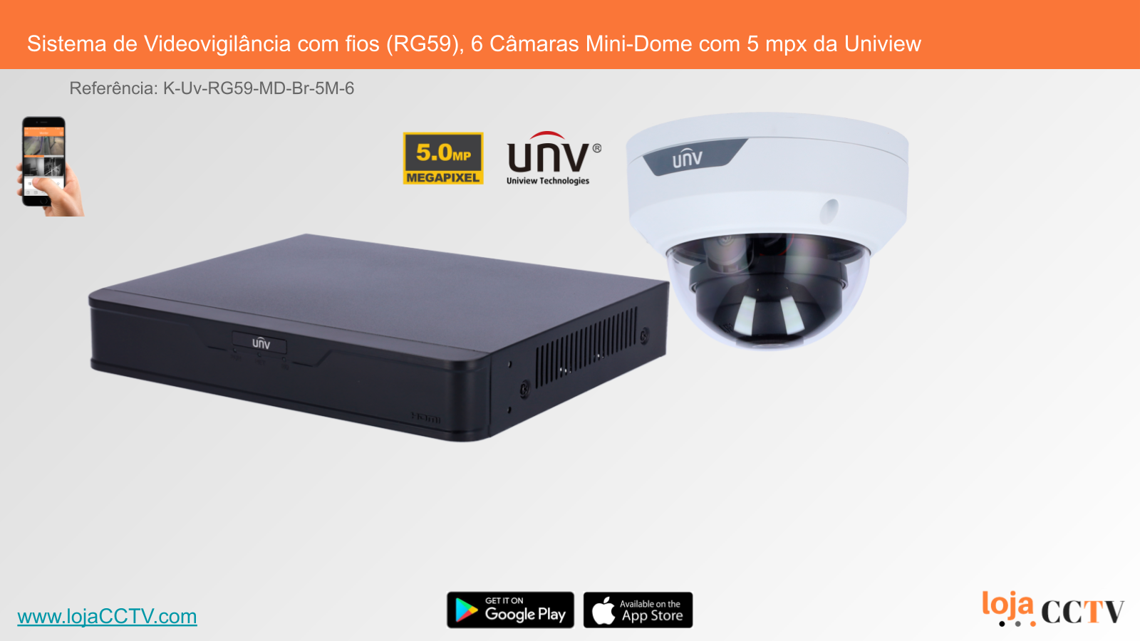 Sistema de Videovigilância com fios (RG59), 6 Câmaras Mini-Dome com 5 mpx da Uniview
