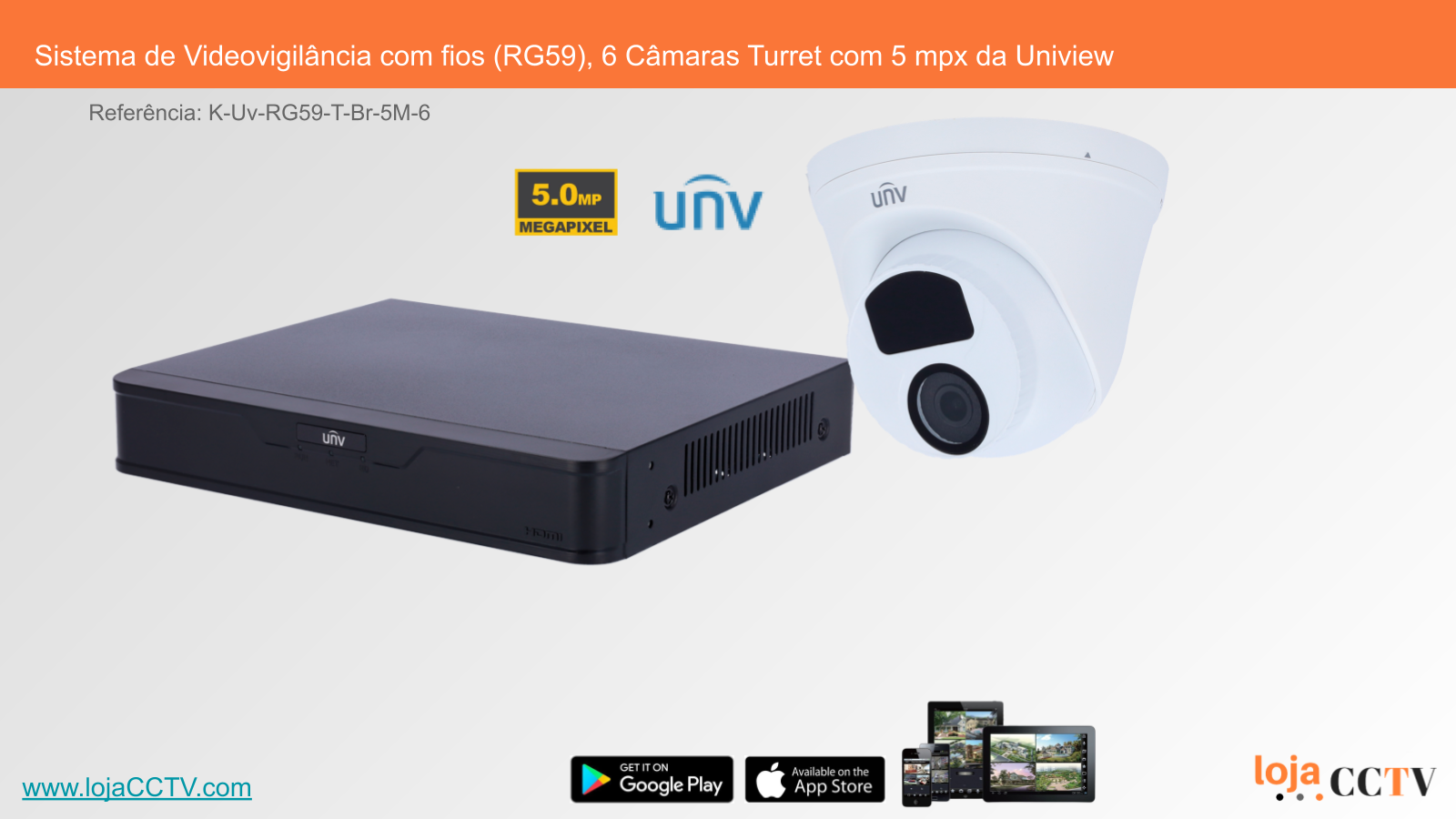 Sistema de Videovigilância com fios (RG59), 6 Câmaras Turret com 5 mpx da Uniview