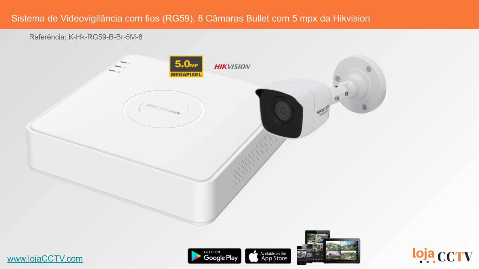 Sistema de Videovigilância com fios (RG59), 8 Câmaras Bullet com 5 mpx da Hikvision