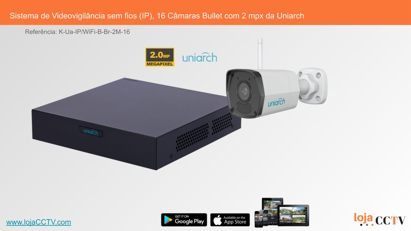 Sistema de Videovigilância sem fios (IP), 16 Câmaras Bullet com 2 mpx da Uniarch