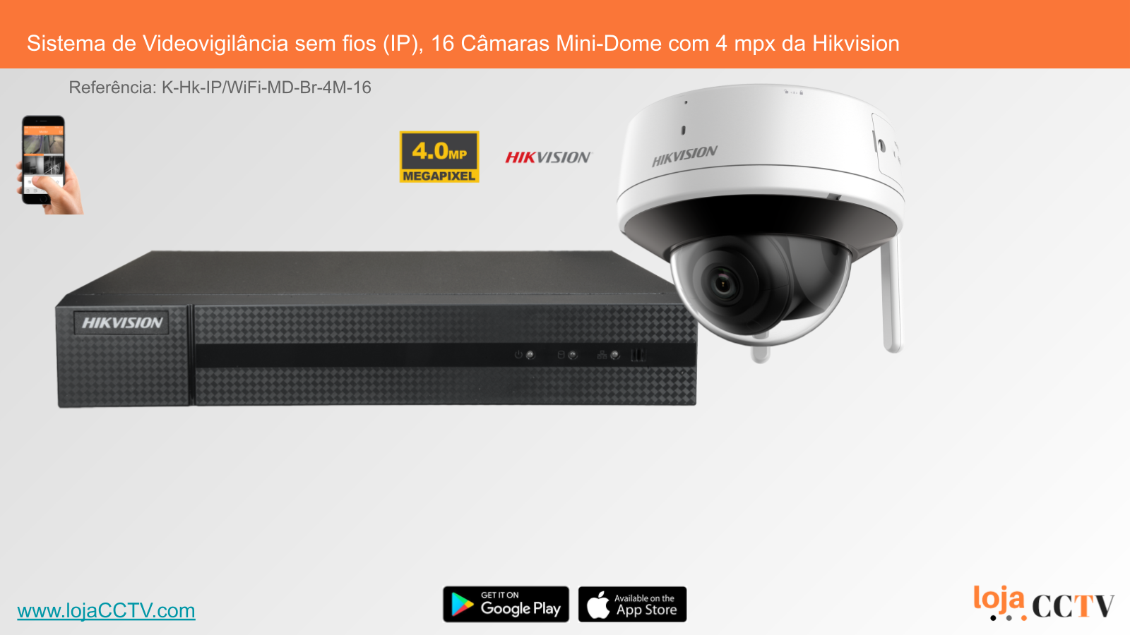 Sistema de Videovigilância sem fios (IP), 16 Câmaras Mini-Dome com 4 mpx da Hikvision