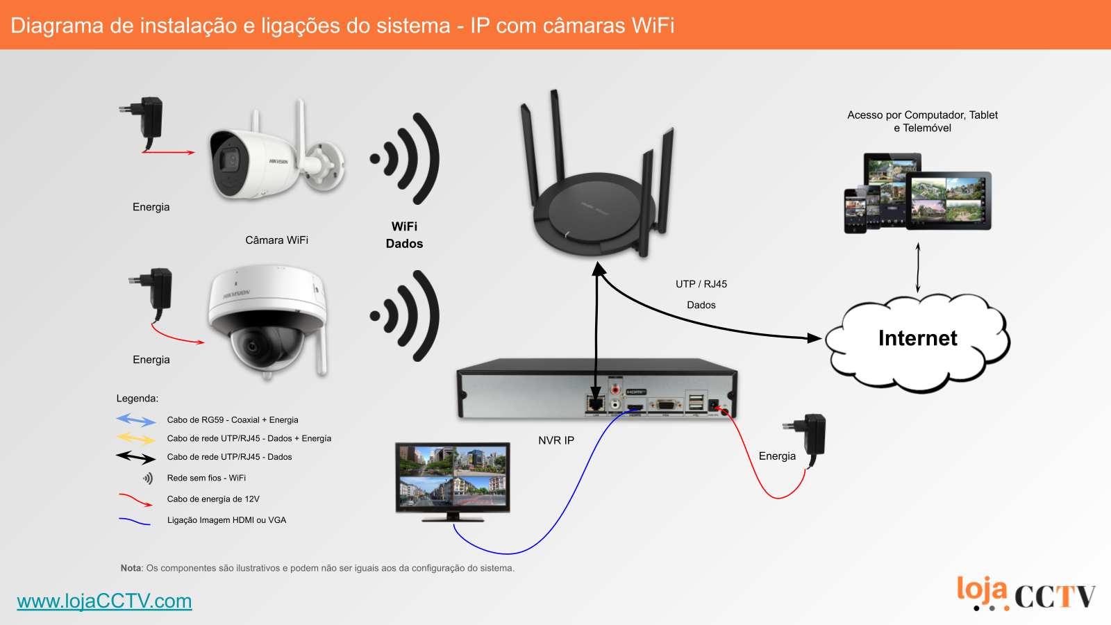 - 1 x Cabo de rede para ligação do gravador de vídeo ao router de internet