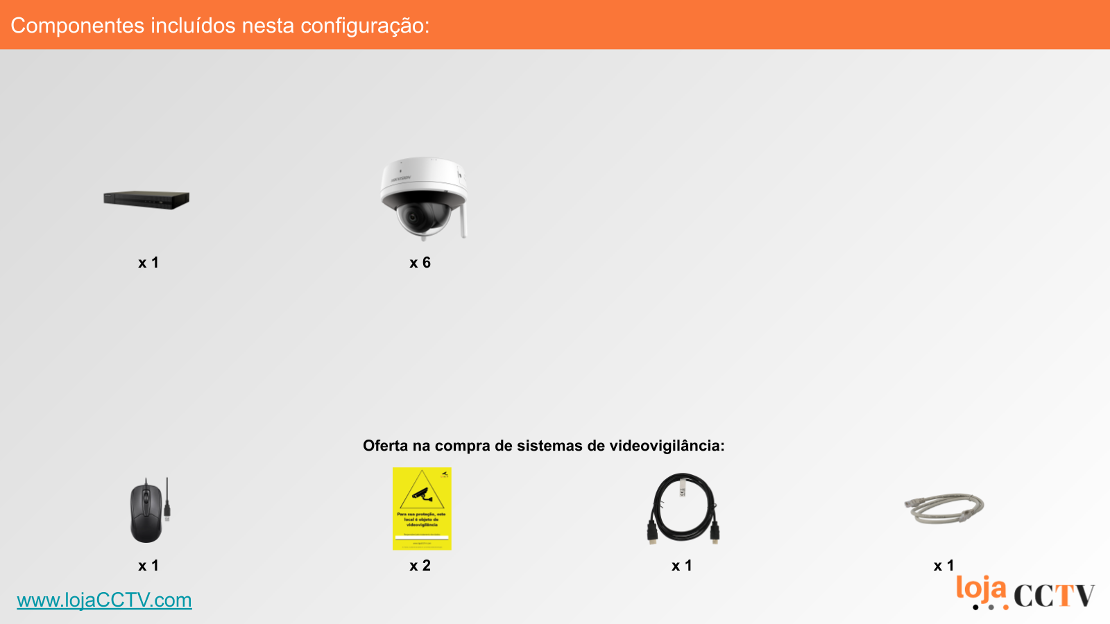 A configuração apresentada é ideal para a sua habitação, loja ou armazém. Com uma resolução de 2 mpx, cada câmara tem qualidade de imagem ideal para cobrir uma área até 25 m². Se tiver áreas superiores, podemos alterar a configuração para incluir uma ou mais câmaras de resolução superior, ou temos outras configurações de sistemas completos disponíveis.
