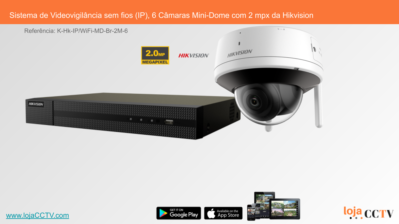Sistema de Videovigilância sem fios (IP), 6 Câmaras Mini-Dome com 2 mpx da Hikvision