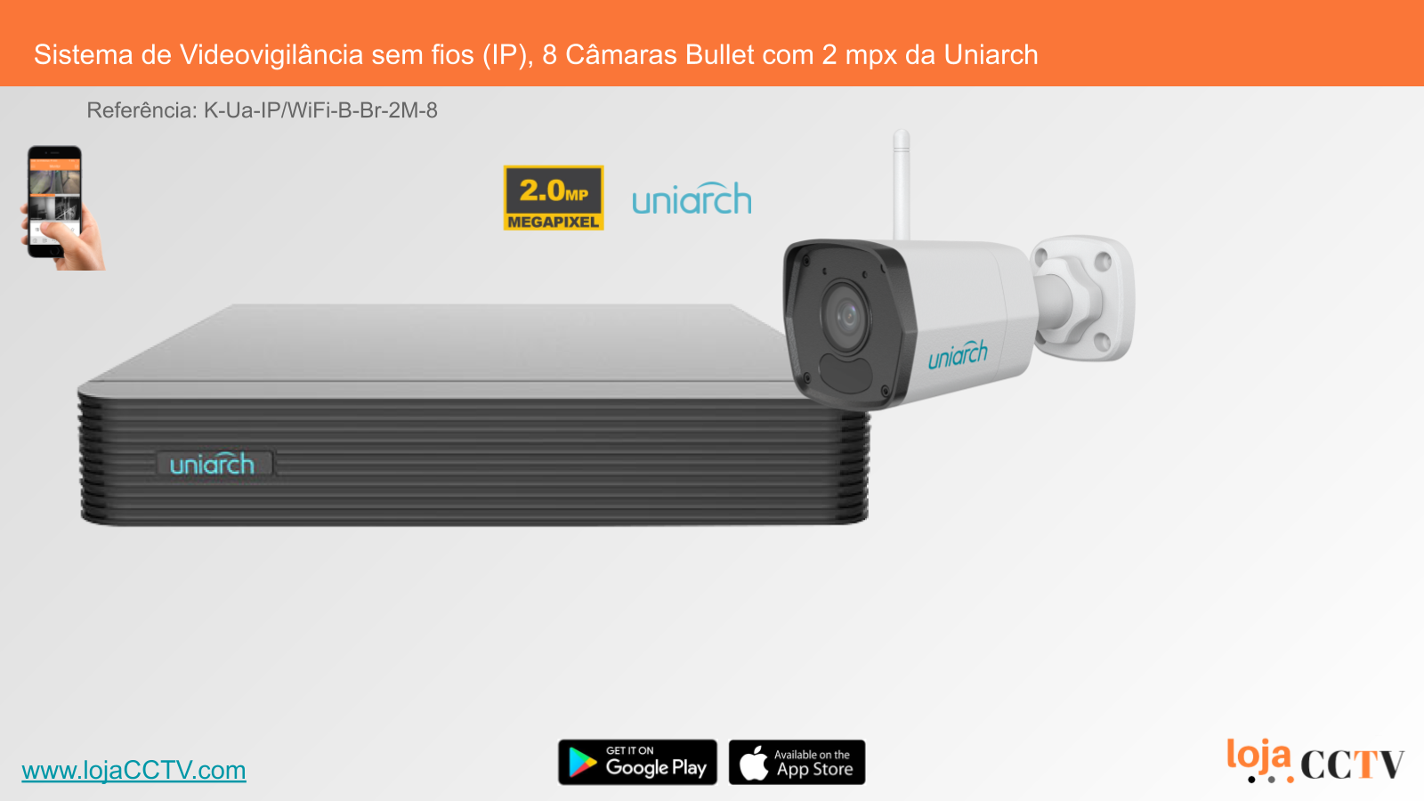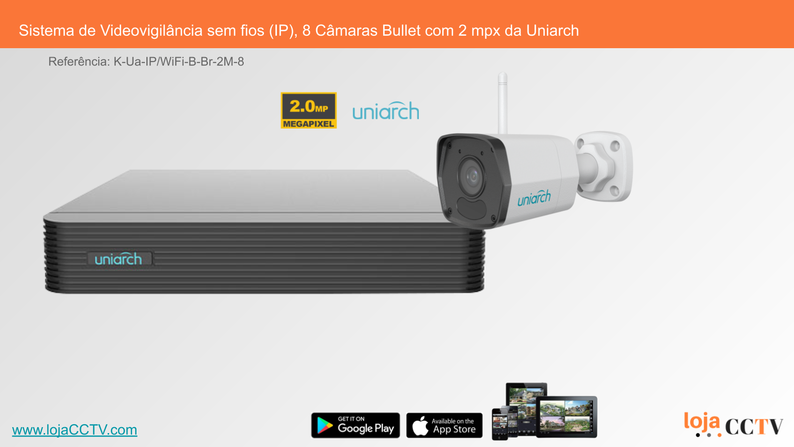 Sistema de Videovigilância sem fios (IP), 8 Câmaras Bullet com 2 mpx da Uniarch