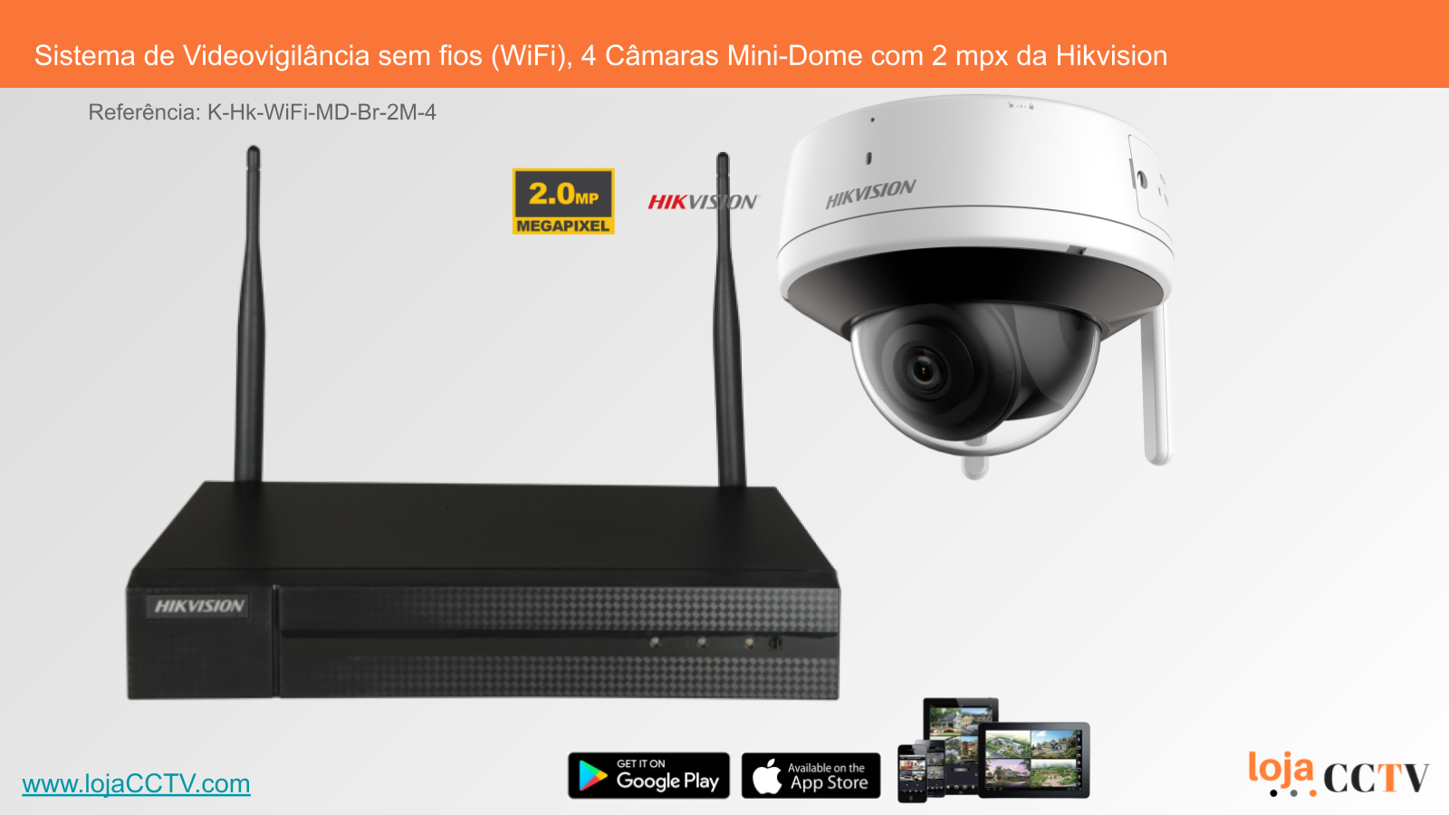 Sistema de Videovigilância sem fios (WiFi), 4 Câmaras Mini-Dome com 2 mpx da Hikvision