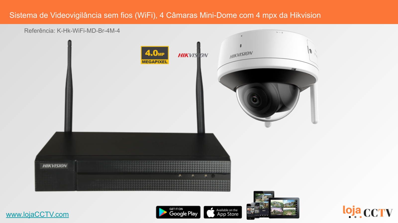 Sistema de Videovigilância sem fios (WiFi), 4 Câmaras Mini-Dome com 4 mpx da Hikvision