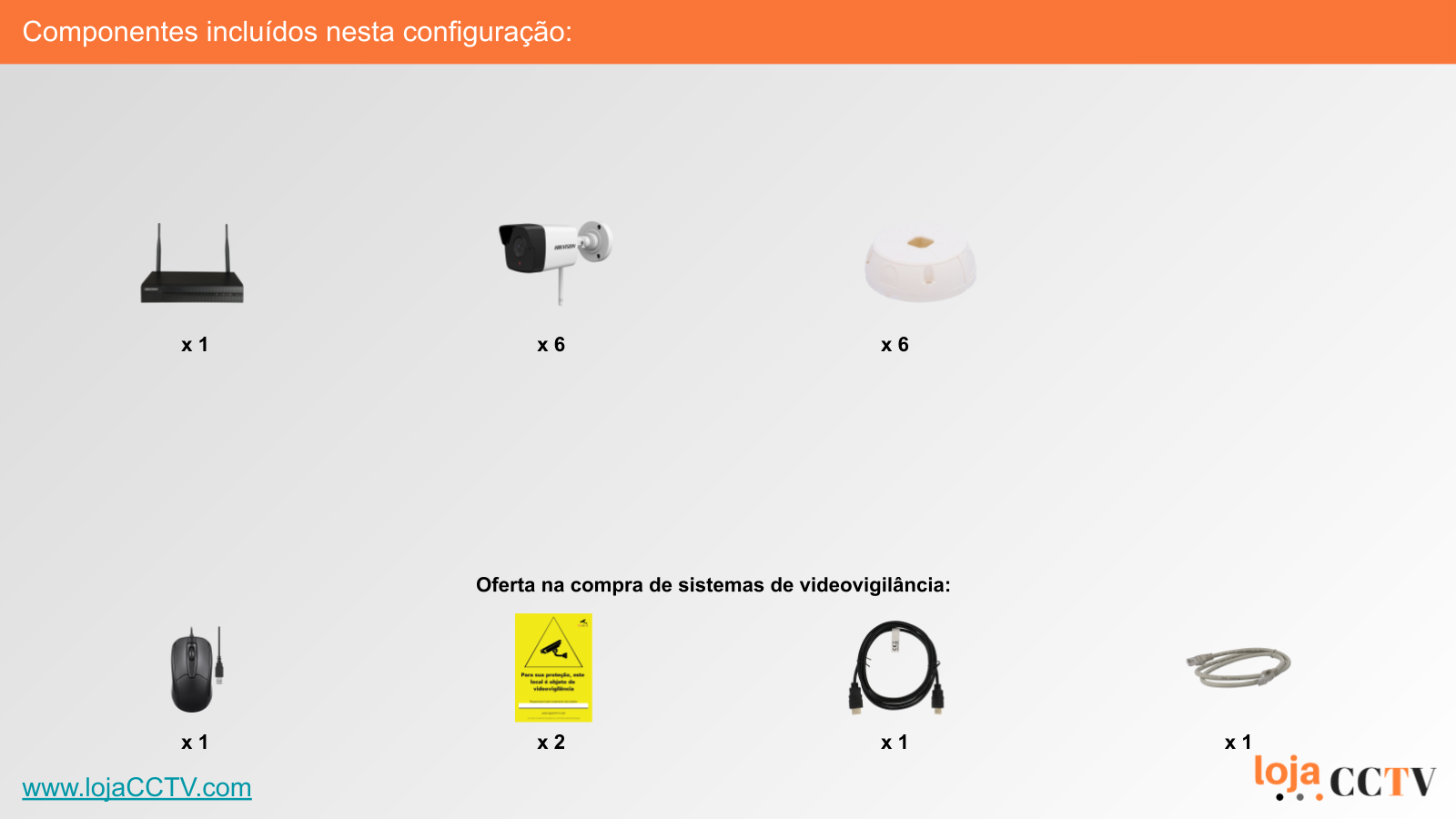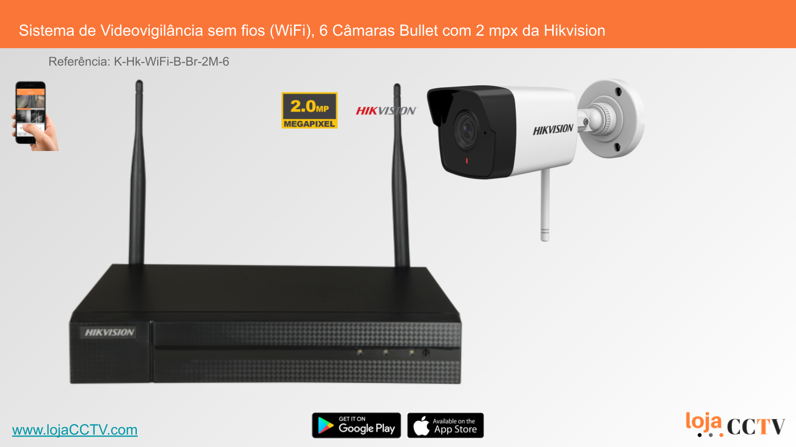 Sistema de Videovigilância sem fios (WiFi), 6 Câmaras Bullet com 2 mpx da Hikvision