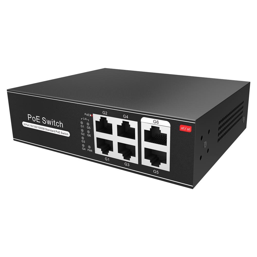 Home Switch PoE Switch PoE 6 portas (4 portas + 2 uplink)-lojaCCTV SW0604POE-G-65-E Switch PoE 6 portas (4 portas + 2 uplink)-lojaCCTV SW0604POE-G-65-E SKU: SW0604POE-G-65-E 38,41 € 40,43 € Desconto de %. IVA incluído. Comprar Contactar Adicionar à wishlist Switch PoE4 portas PoE + 2 Uplink RJ45Velocidade até 1000 Mbps em todas as portasAté 60W no total para todas as portasLargura de banda 12 GbpsPadrão IEEE802.3af (PoE) / at (PoE+)EspecificaçõesInterface:4 portas PoE RJ45 + 2 Uplink RJ45Velocidade portas:10/100/1000 MbpsLargura de banda:Até 12GbpsFornecimento de energia eléctrica:Até 30W por portaCaracterísticas PoE:Conforme norma IEEE 802.3af/at PoEAlimentação:AC 220 VTemperatura de funcionamento:-20º C ~ 55º CDimensões / Peso:130 (Fo) x 40 (Al) x 195 (An) mm / 600 gInstalação:Secretária / Parede Marca lojaCCTV Partilhar