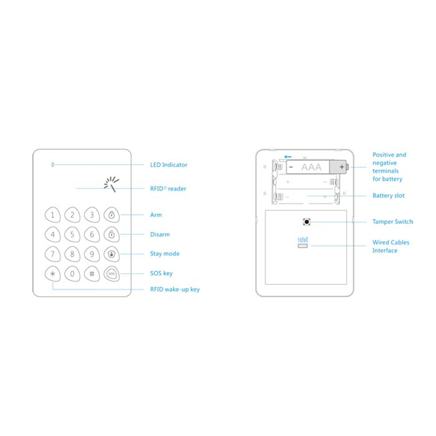 Arme e desarme o sistema de alarme facilmente com o teclado ou porta-chaves de proximidade.