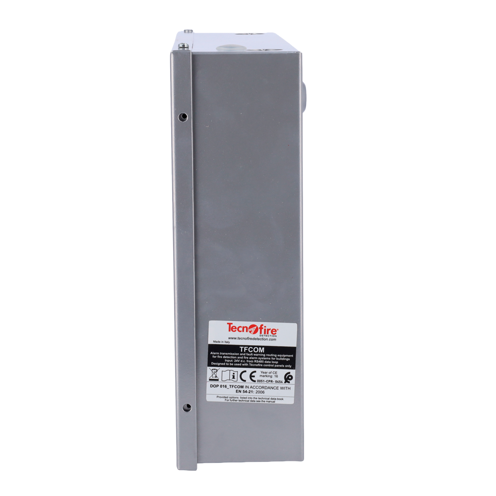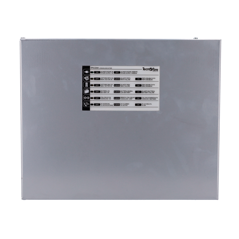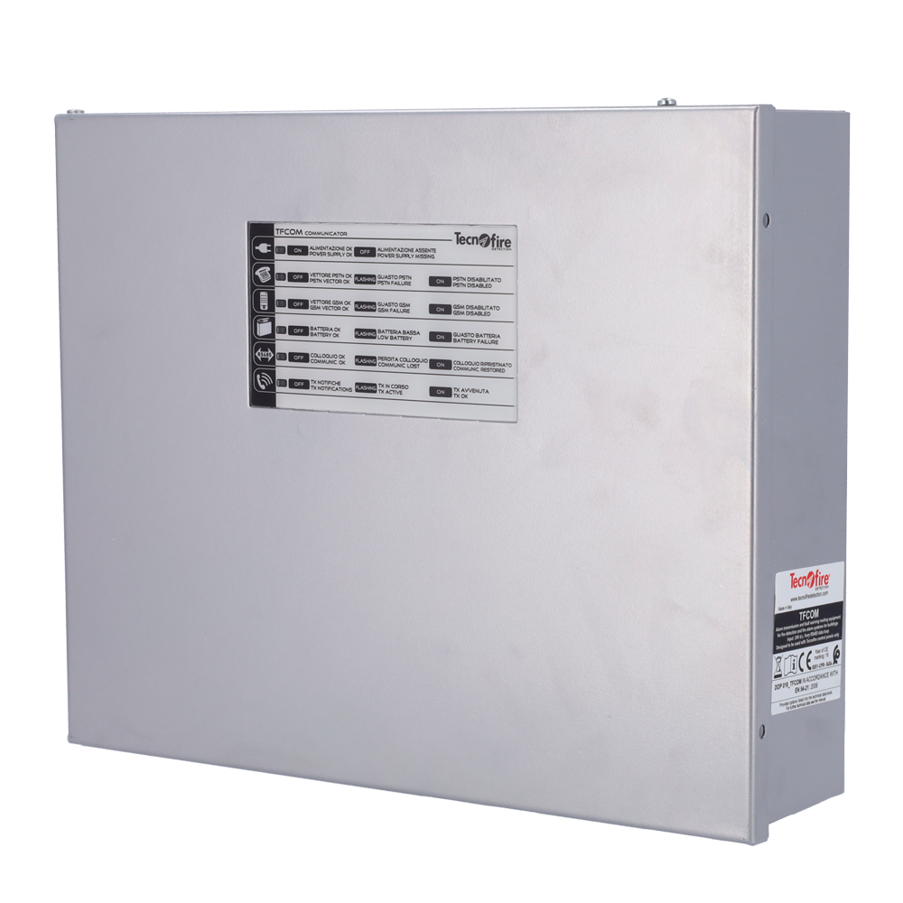 O Tecnofire TF-TFCOM é um transmissor telefónico endereçável RTC com interface integrada e opção de módulo GSM-GPRS, ideal para sistemas de deteção de incêndios. Permite a notificação de eventos e alarmes através de mensagens de voz, utilizando linhas telefónicas tradicionais ou redes móveis, garantindo uma comunicação rápida e fiável com centros de controlo, serviços de emergência ou equipas de manutenção.