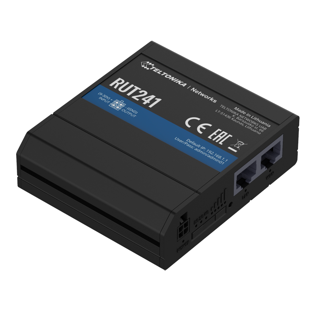 Teltonika Router 4G Industrial 2 portas Ethernet RJ45 Fast Ethernet 4G (LTE) Cat 4 até 150Mbps-TK-RUT241