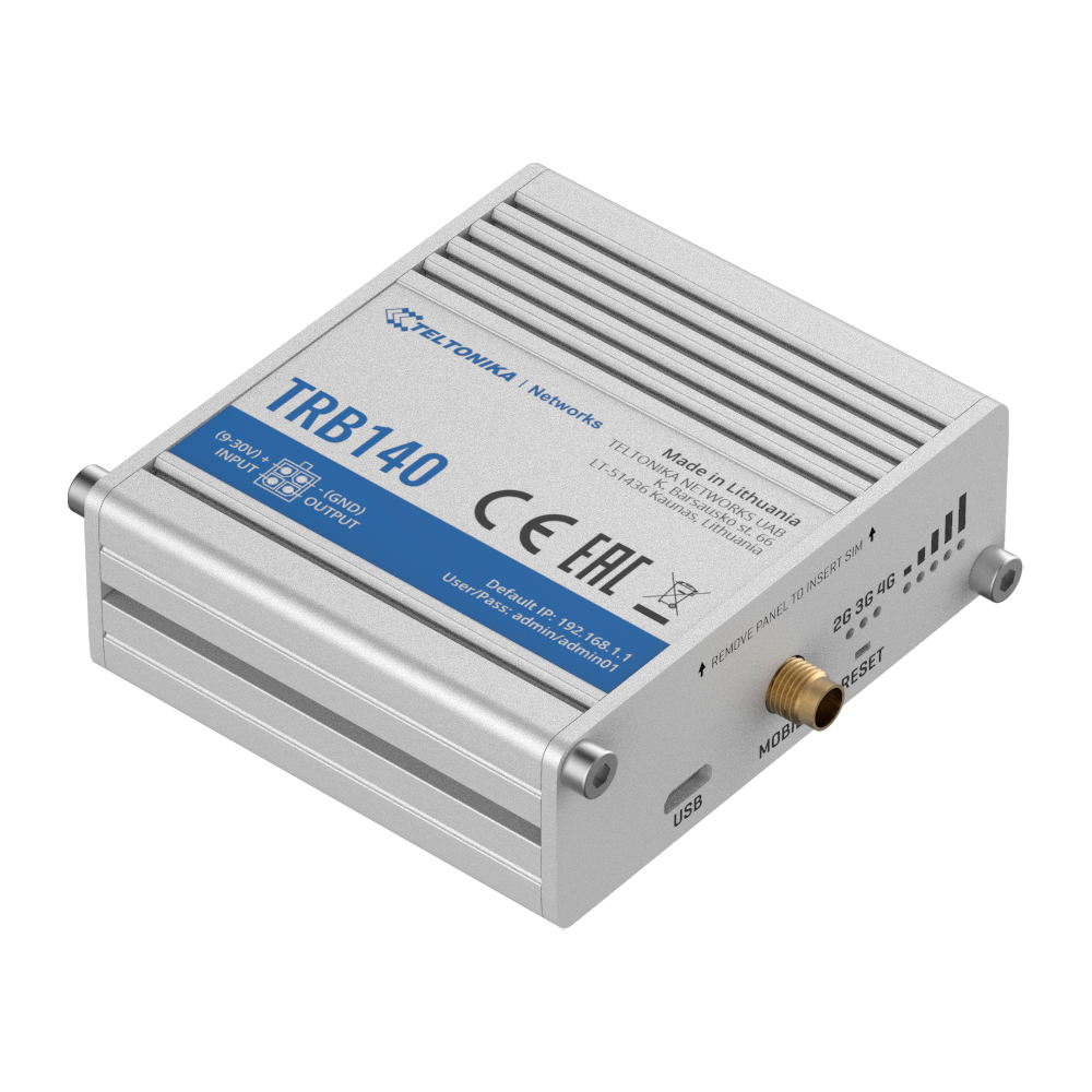 Teltonika Gateway 4G Industrial 4G Cat 4 / 3G / 2G Porta Ethernet RJ45 10/100/1000Mbps-TK-TRB140