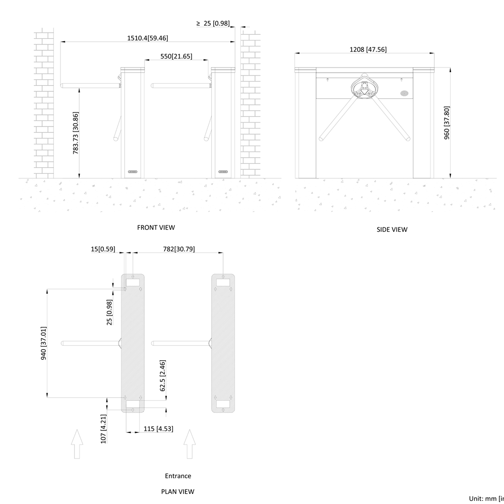 | Modos de Configuração | Um ou dois sentidos / Passagem livre num sentido e controlo de acesso configurado mecanicamente no sentido oposto. |