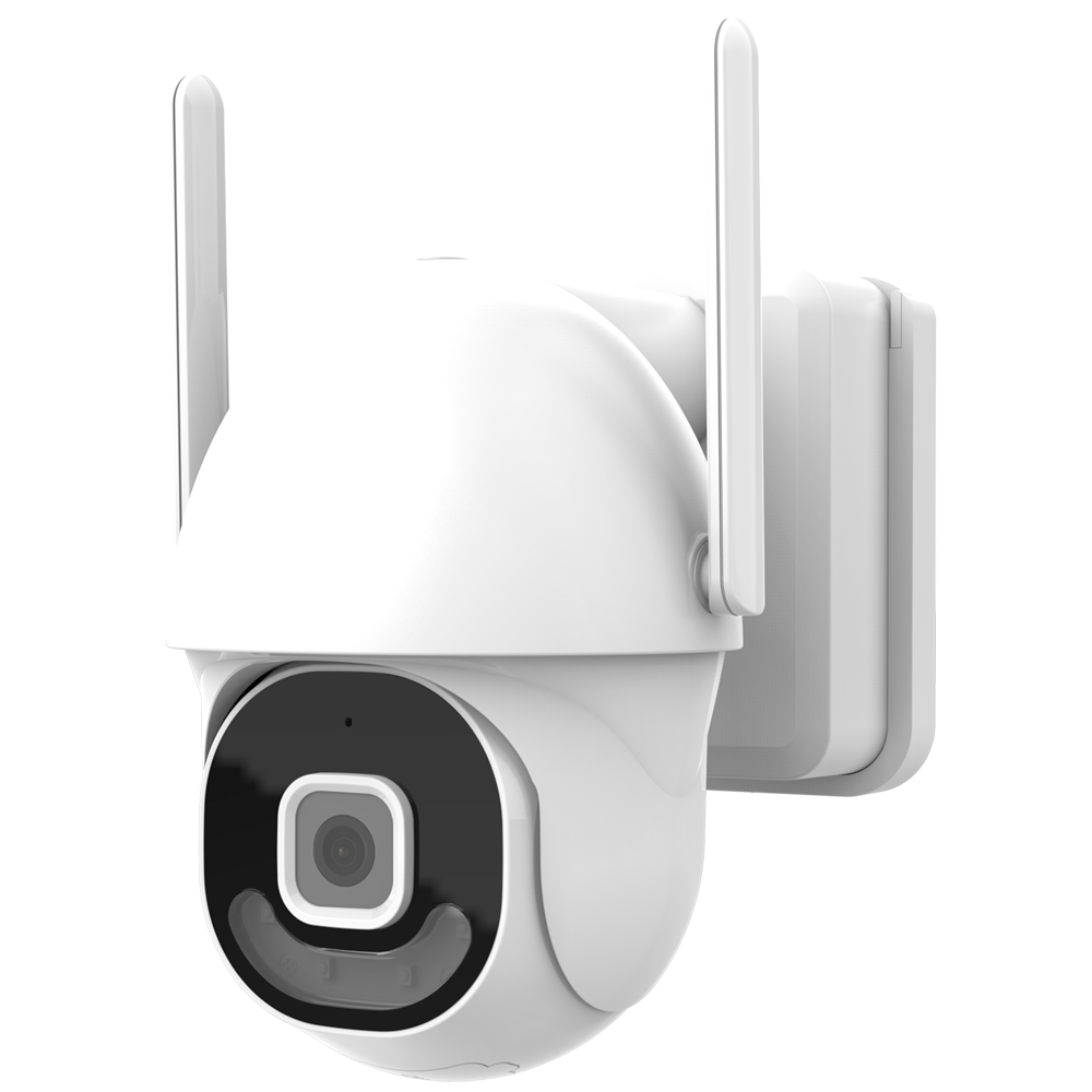 Câmara rotativa (Pan & Tilt) de exterior com 3MP para vigiar entradas, pátios e quintais, com seguimento automático e visão a cores com luz branca.
