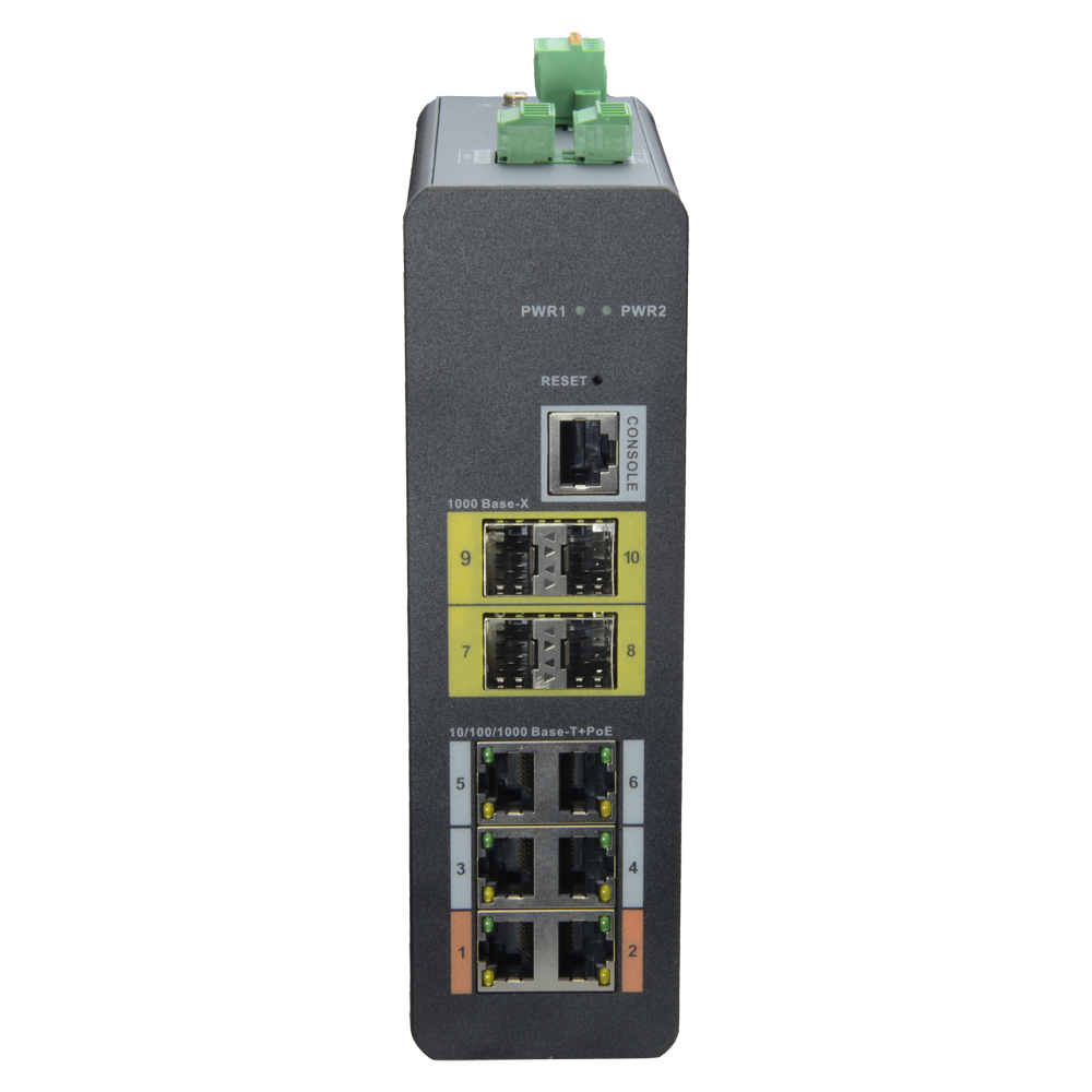 Home Switch PoE Gerenciável Switch HiPoE X-Security 6 Portas PoE (RJ45) + 4 Porta Uplink (SFP) Velocidade 10/100/1000 Mbps-X-Security XS-SW1006HIPOE-MFG-120-DIN Switch HiPoE X-Security 6 Portas PoE (RJ45) + 4 Porta Uplink (SFP) Velocidade 10/100/1000 Mbps-X-Security XS-SW1006HIPOE-MFG-120-DIN SKU: XS-SW1006HIPOE-MFG-120-DIN 491,64 € 517,52 € Desconto de %. IVA incluído. Comprar Contactar Adicionar à wishlist Switch HiPoE X-Security6 Portas PoE (RJ45) + 4 Porta Uplink (SFP)Velocidade 10/100/1000 Mbps2 Portas Hi-PoE / Consumo máximo 120WVLAN/STP/RSTP/MSTP/ACL/QoS/802.1XLACP/Static LAG/DHCP Snoop/DHCP ServerEspecificaçõesInterface:6 Portas PoE RJ45 + 4 Portas SFP Uplink + 1 RS232 + 1 RS485Velocidade portas:6 x 10/100/1000 Mbps BaseT /4 x 100/1000 Mbps BaseXFornecimento de energia eléctrica:Até 60W (Hi-POE) na porta 1 e 2 (120 W para todo o dispositivo)Características PoE:Em relaçãp a norma Hi-PoE / IEEE 802.3at PoE+ / IEEE 802.3af PoEInstalação:Calha DINRedundância:STP/RSTP/MSTP/ERPSProtocolos de Gestão:Web/CLI/SSH/Telnet/SNMP V1/V2/V3Alimentação:DC 9 V - 57 V/ PoE: 48 V-57 VTemperatura de funcionamento:-40º C ~ 75º CDimensões:125 (Fo) x 53.5 (Al) x 175 (An) mm Marca X-Security Partilhar