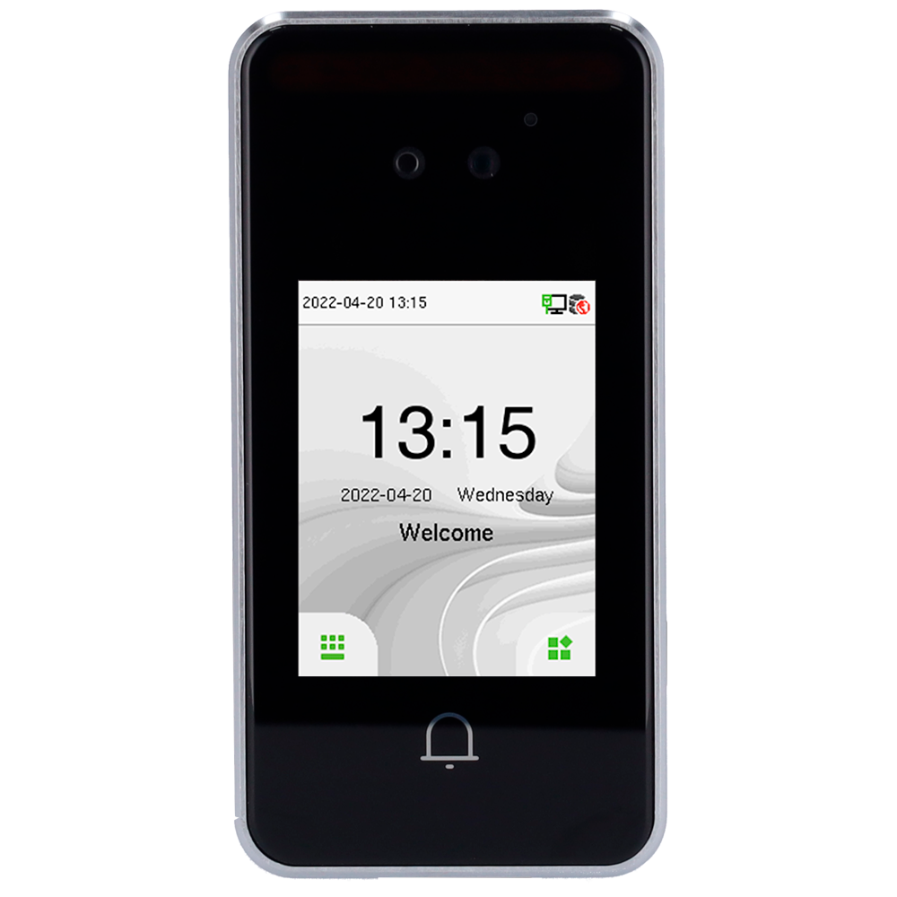 Home Terminais ZK-VL-SPEEDFACE-V3L-LITE-RF-1-W ZK-VL-SPEEDFACE-V3L-LITE-RF-1-W SKU: ZK-VL-SPEEDFACE-V3L-LITE-RF-1-W 225,95 € Desconto de %. IVA incluído. Comprar Contactar Adicionar à wishlist Controlo de acesso e presença IP65Facial, cartão EM e PIN3.000 cartões | 200.000 registos2.4" Ecrã tátil TFT | TCP/IP e WiFiCompatível com ZKBioAccess, ZKBioCVSoftware ZKBioTime8 2 equipamento incluídoEspecificaçõesMarca:ZKTecoModelo:VL-SPEEDFACE-V3L-LITE-RF-1-WCPU:1GHz Dual Core CPU, Memory 256MB RAM 512MB FlashCámara:Luz blanca LEDTiempo de verificación:< 1 segCapacidad:Hasta 3.000 tarjetas y 500 carasRegistros:200.000 registrosModos de identificación:Reconocimiento facial, tarjeta, PIN y/o combinacionesTarjeta de proximidad:RFID EM 125 kHzPantalla:2.4" TFT táctil a colorComunicación:TCP/IP y WiFiControladora integrada:Sensor de puerta, pulsador y reléSoftware:Software Presencia: ZKBioTime 8.0 (hasta 2 equipos incluido gratuitamente)Alimentación:DC 12 V / 1.5 A máx.Grado de protección:Exterior IP65Temp. funcionamiento:-5 ºC ~ +45 ºCDimensiones:58 (An) x 117 (Al) x 17 (Fo) mmPeso:400 g Partilhar