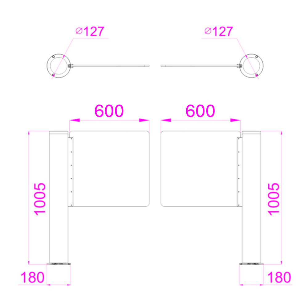 | Dimensões de passagem | 1200 (L) x 127 (P) mm (adequado para pessoas com mobilidade reduzida) |